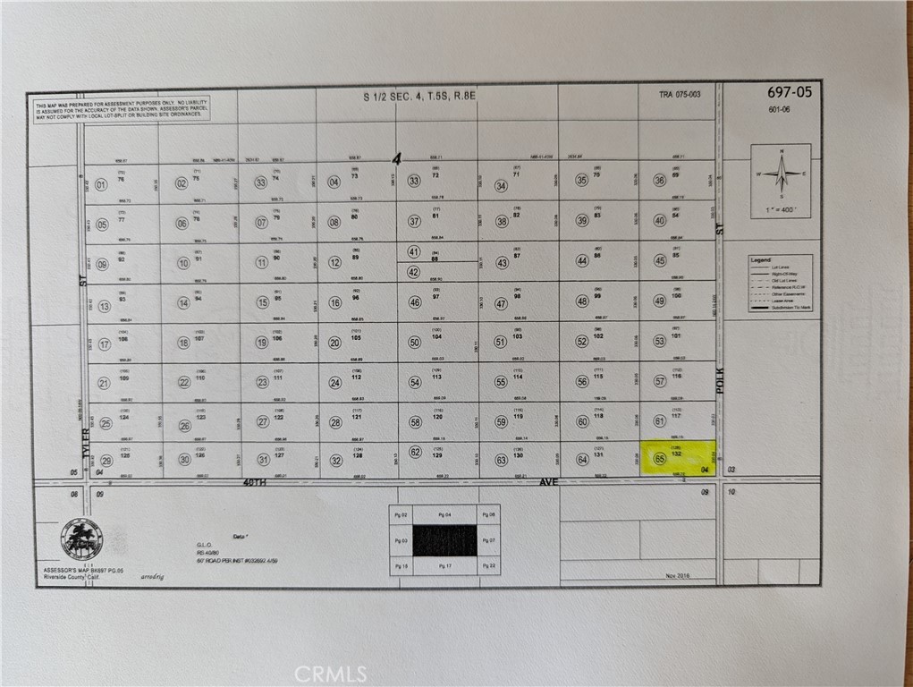 This 5 acre parcel in the Indio Hills on the future planned corner of 40th Ave & Polk St. according to the Plat Map. Easy access in the future when developed. Currently, undeveloped vacant land and zoned W-1. Land Coordinates: 33.7591043388777, -116.147932387953. 5.00 ACRES IN POR SEC 4 T5S R8E FOR TOTAL DESCRIPTION SEE ASSESSORS MAPS TownshipN 5 Acres 005.00 Section 04 Portion 1/2 Range 08 RangeDirection E Vacant Residential Land - Other 075-003 DESERT SANDS USD
