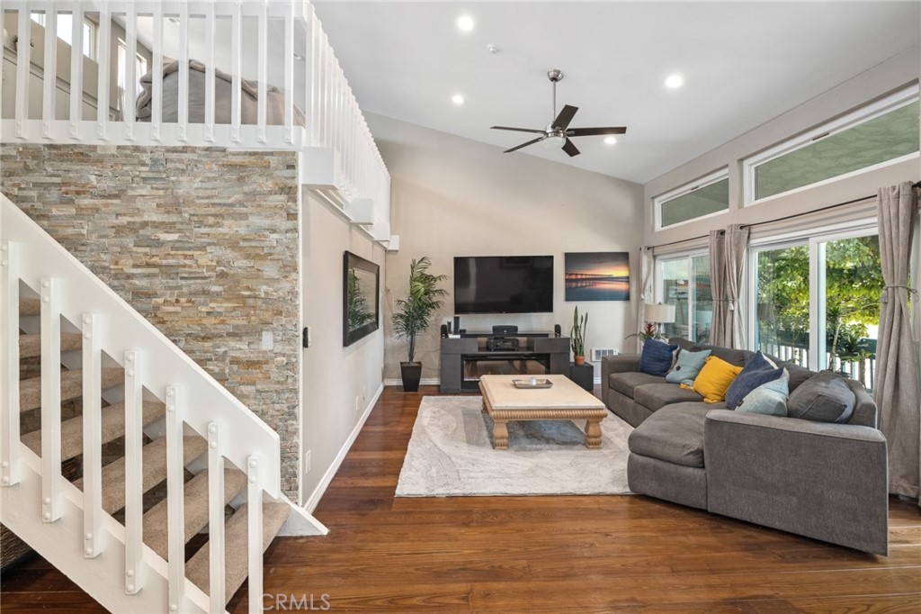 Fall in love as you step into this spacious, and newly remodeled gem in the highly sought-after Brookside Village. This upstairs end unit is a coveted model and features a unique loft space, a large primary bedroom plus two additional bedrooms. Upgrades abound throughout in this beautiful home with Travertine stone tiles along with the Mafi Engineered ¾ inch wood plank floors, new energy efficient Milgard dual pane windows, built-in electric wall heaters, new electric panel, new front door with Schlage smart lock, Lutron smart home system for recessed lighting capable of controlling the Ring Security, four hunter ceiling fans and recessed lighting throughout. The Walls and ceilings are freshly painted. The living room, kitchen and 2 of the 3 bedrooms all have 17’ high vaulted ceilings. A seamless designed open floor plan harmoniously combines the kitchen and island to the living room that opens to a 20’ Balcony, thus making this space perfect for entertaining family and friends. Whip up delicious meals in the newly remodeled kitchen with large butcher block and quartz island that seats three, a large stainless-steel sink and powerful garbage disposal, soft close cabinets and drawers, pantry with pull out drawers, Quartz counter tops, all stainless-steel LG appliances, a reverse osmosis water filter system, and maple inspired open shelving. Take a stroll after dinner and enjoy the lush landscaping, multiple water features including a koi pond and seasonal ducks in this resort style community. Large master bedroom with en-suite bath, and large closet with custom built-in drawers. The updated guest bath has Travertine floors and walls, a Carrera marble countertop, soaking tub and walk-in shower. The complex includes two pools, a remodeled gym, sauna, clubhouse, & tennis courts plus guest parking. HOA includes many amenities including 24-hour security, water, trash, and earthquake insurance. Located just an easy bike ride or walk to the beach, Redondo Beach Pier, Alta Vista Park and the shops and restaurants of Downtown Riviera Village. Award-winning Redondo Beach Schools, make this home truly perfect to begin your next chapter. Run, don’t walk, to see this amazing home!