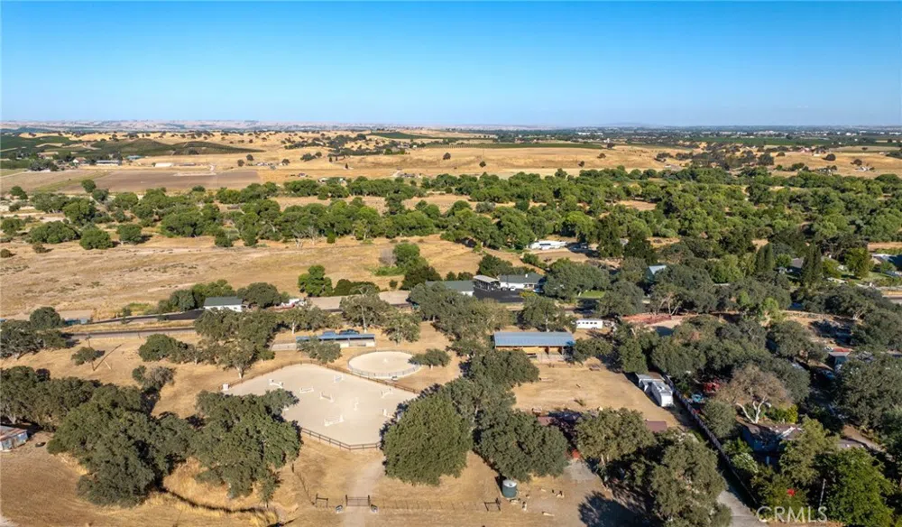 Back on the market...but not due to any fault of the property! Welcome to your quiet and peaceful ranch retreat in Paso Robles! As you approach the circular driveway framed by majestic mature oak trees, you'll immediately sense the serenity and possibilities this 4.27 acre property holds. The ranch style, 3 Bedroom/2 Bathroom home is comfortable and inviting with a large kitchen, great room, big picture windows and wood-burning stove. Step onto the back patio and imagine relaxing with a cup of coffee or a glass of wine surrounded by fruit trees, a flourishing garden, your grazing horses and even your own cheerful flock of chickens. Conveniently located to both the 101 and 46 Highways, it is just ten minutes from downtown Paso Robles where you'll have plenty of wineries, shopping and dining options at your fingertips. The proximity to multiple equine venues, trail riding areas and veterinarians makes this location a haven for horse lovers and trainers alike. The impressive list of improvements speaks volumes about the thoughtfulness and care put into this ranch…an 8-stall barn with 4(12x24) and 4(24x24) stalls set on DG pad with mats, 60-foot round pen and jumping arena (approximately 90'x190') both with DG pad and footing, tack and equipment room set on concrete pad, wash rack on concrete pad, two cross ties, water access to the horse facilities and pipe corrals, full RV hookups (power, water, septic), separate gated entrance and ample parking. Also, there is plenty of useable land to build additional animal pens or even a charming guest house, creating the ultimate getaway spot for friends and family or a convenient residence for a ranch hand. Please be sure to explore all the building options and additional information/requirements with the County of San Luis Obispo. With its prime location, amenities and room for expansion, this property is a true gem for you and your horses. Call today to schedule a private showing and be sure to check back for video and more property photos.