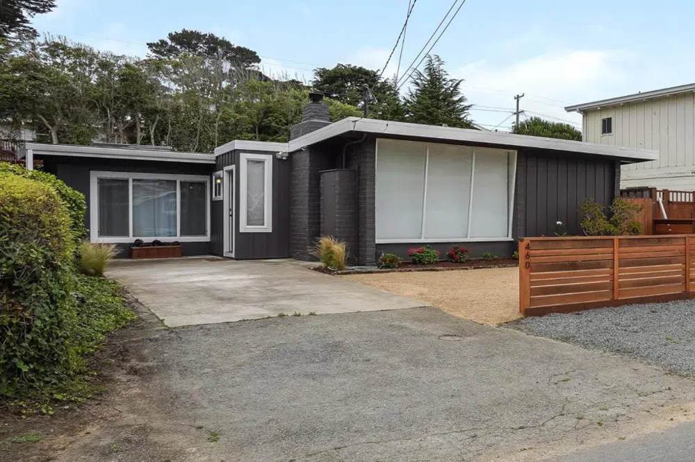 Exceptional MONTARA GEM. This light and bright Mid Century Modern bungalow has been thoughtfully modernized throughout. An inviting entry leads into an open plan main living area with open beam ceilings, large windows, skylight, and hardwood floors. A new wood stove with custom mantle and remote control light filtering blinds create a modern and cozy space to come home to. The kitchen is tastefully designed to maximize space with custom cabinetry, beautiful tile backsplash, breakfast bar, and upgraded appliances. The Primary Bedroom includes a beautiful en suite bathroom, skylight, and laundry area. A second ample-sized bedroom with skylight and hall bath completes the main living area. The outdoor space includes a stylish modern fence and landscaping in the front yard and a fully fenced terraced and landscaped backyard with a large patio providing plenty of room to entertain. This home has it all, come enjoy the coastal lifestyle. **Buyer to verify square footage **